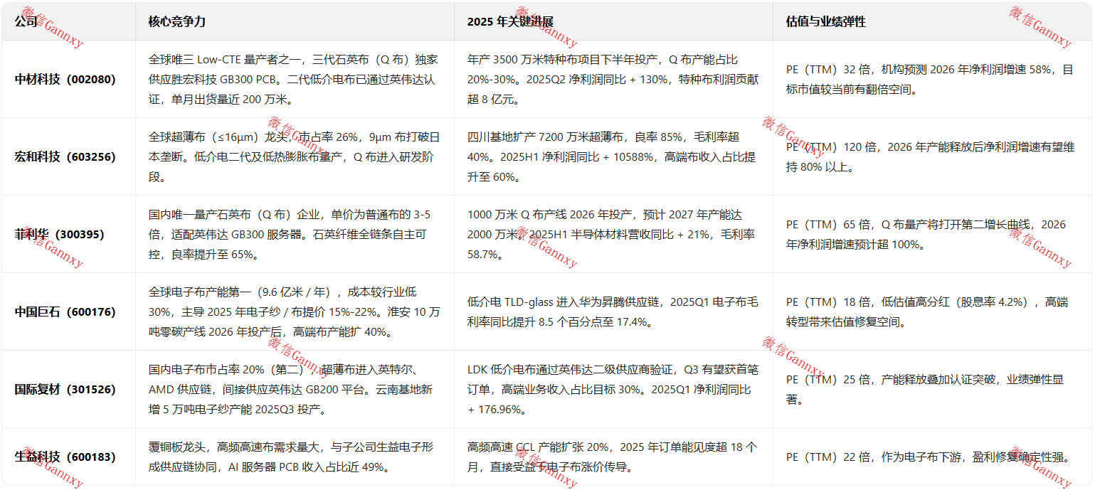 短期(6-12 个月):关注产能扩张快、客户认证进展顺利的企业,如国际复材(英伟达供应链突破)、中国巨石(成本优势 + 高端转型)。